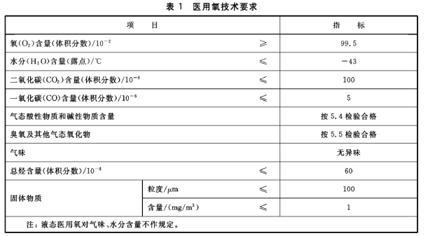 ● 医用氧的技术要求应符合表1的规定。