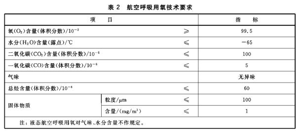 ● 航空呼吸用氧的技术要求应符合表2的规定。