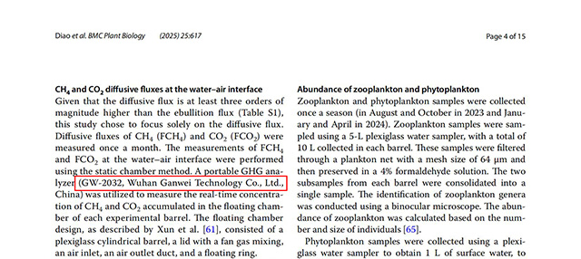 的GW-2032 便携式温室气体分析仪+水-气界面温室气体通量观测漂浮箱,可实现对水-气界面CO2、CH4和H2O通量观测,为该项生态系统学术研究提供了有效、准确的数据支持。