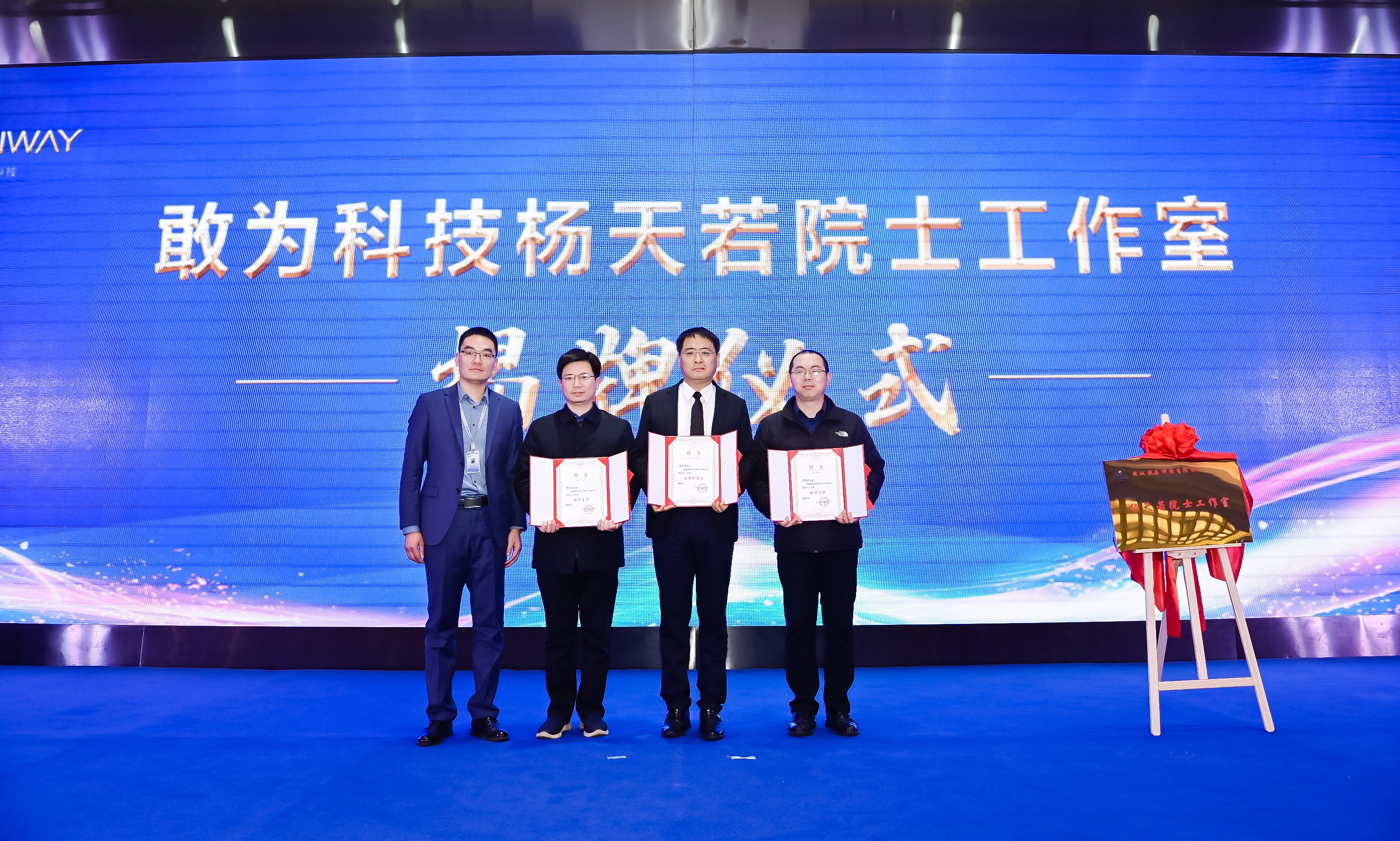 牵手国际一流人-机-物智能研究方向专家杨天若院士,成立院士工作室!3月25日,在 十周年答谢会上, -杨天若院士工作室正式签约、揭牌,双方达成战略合作关系。特聘请杨天若院士为首席科学家,邓贤君教授、郭连波教授为执行主任。