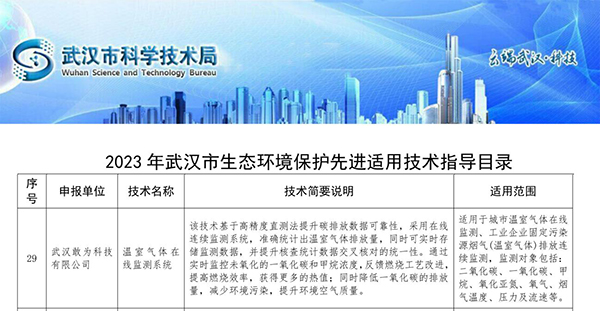 祝贺 | 入选《2023年武汉市生态环境保护先进适用技术指导目录》